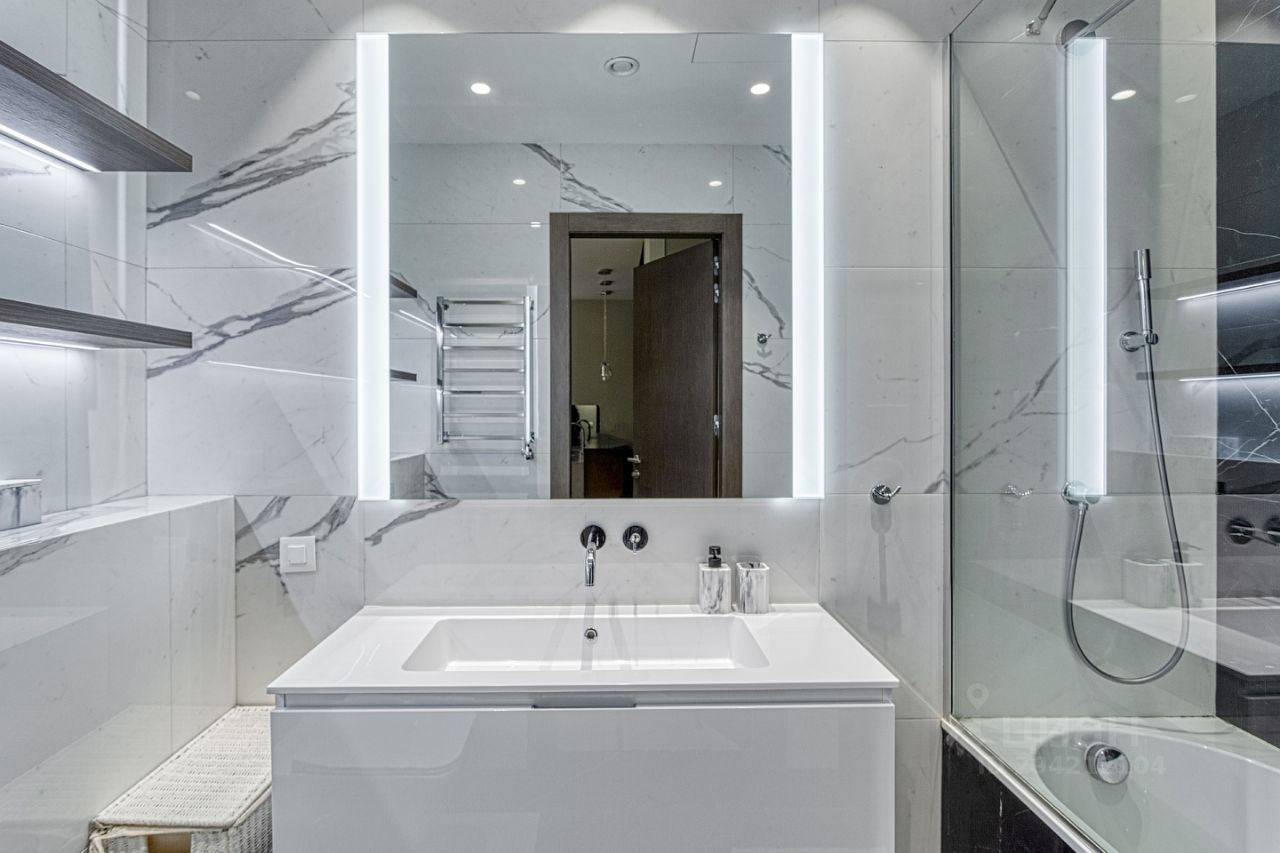 Ремонт выполнен в минималистичном стиле, в интерьере преобладают светлые оттенки, отделка выполнена из качественных материалов, установлена дорогая техника.