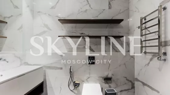 Апартаменты расположены на пятьдесят восьмом этаже, откуда открываются захватывающие виды на столицу.