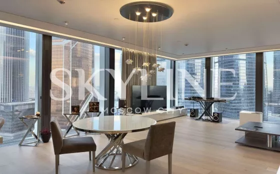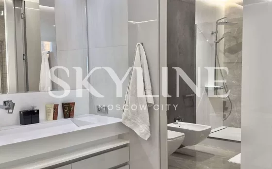 Современный ремонт выполнен в светлой цветовой палитре с использованием натуральных материалов из дерева, камня и керамогранита. Многоуровневое освещение. Система умный дом, управляемая с телефона. Шикарный панорамный вид из окна на Москва-Сити. Собственный парк на стилобате, бассейн с джакузи и зоной отдыха с шезлонгами, фитнес клуб Crocus Fitness с эксклюзивными условиями для жильцов комплекса, СПА, хамам, сауна, студия красоты. В комплексе есть частный кинотеатр, сквош, клубный лаундж, фитнес - бар, Room - service. Многоуровневый подземный паркинг. Круглосуточная система охраны.